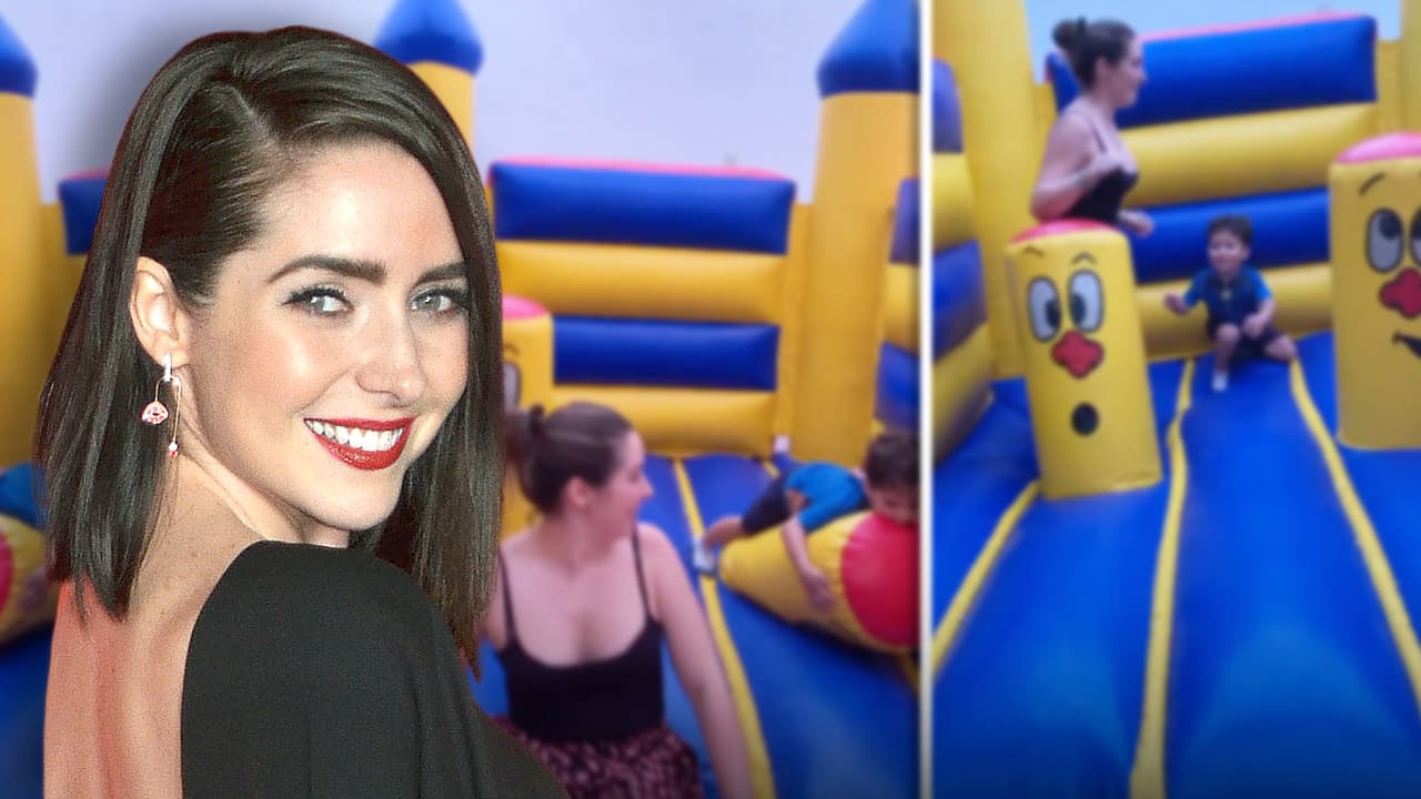 Como niña, Ariadne Díaz es la más divertida saltando en un inflable con su hijo Diego