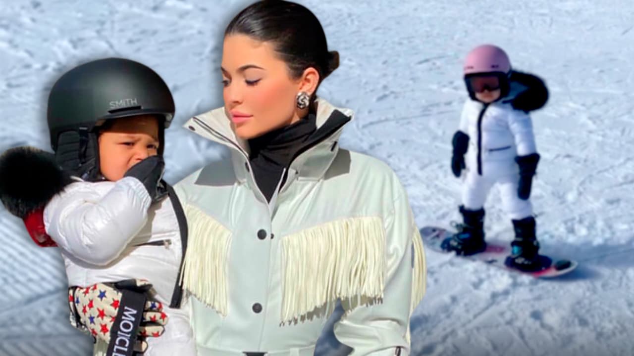 Con el mayor estilo posible Stormi practica ‘snowboard’ bajo la enternecida mirada de Kylie Jenner