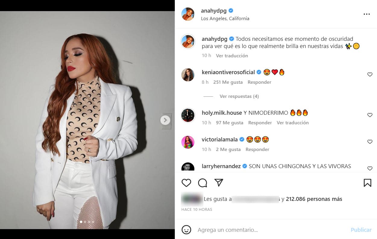 Anahy compartió en Instagram imágenes de lo que sucedió y escribió: "Todos necesitamos ese momento de oscuridad para ver qué es lo que realmente brilla en nuestras vidas".