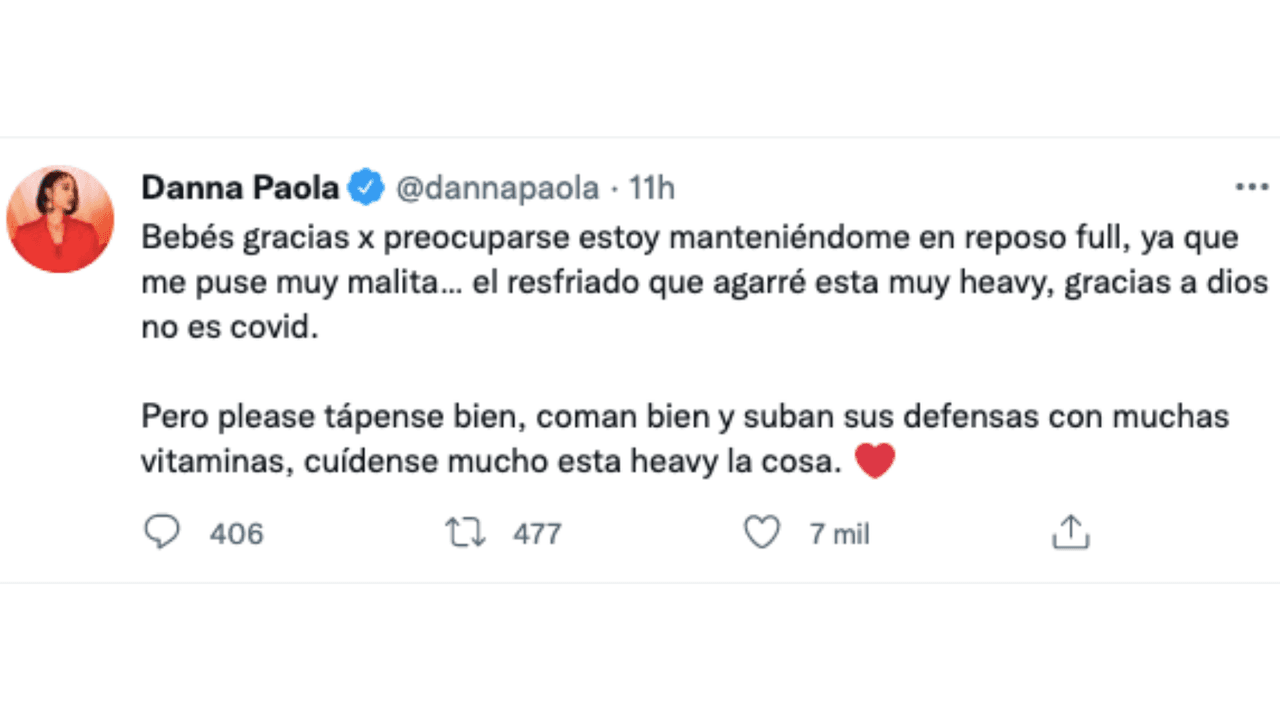 Los internautas no esperaron para mostrar su apoyo a su artista favorita. Asimismo, se alegraron porque Danna Paola no dio positivo a covid-19.