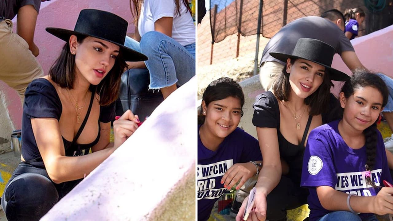 Eiza González celebra a México ayudando a niños migrantes y pinta su propio mensaje en el muro fronterizo