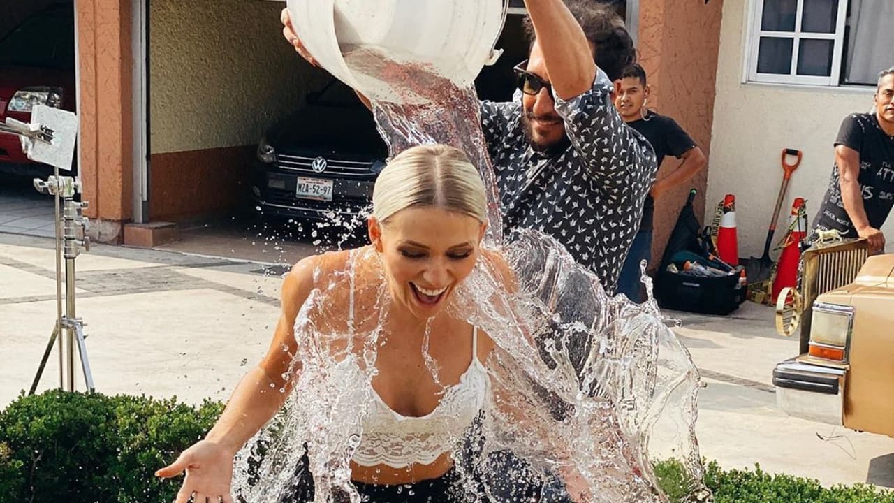 La actriz publicó en redes sociales un video y un par de fotos donde mostró el momento en el que la bautizaron en el cine. La rusa agradeció la nueva oportunidad que su profesión le da y, para celebrarlo, sus compañeros la bañaron.