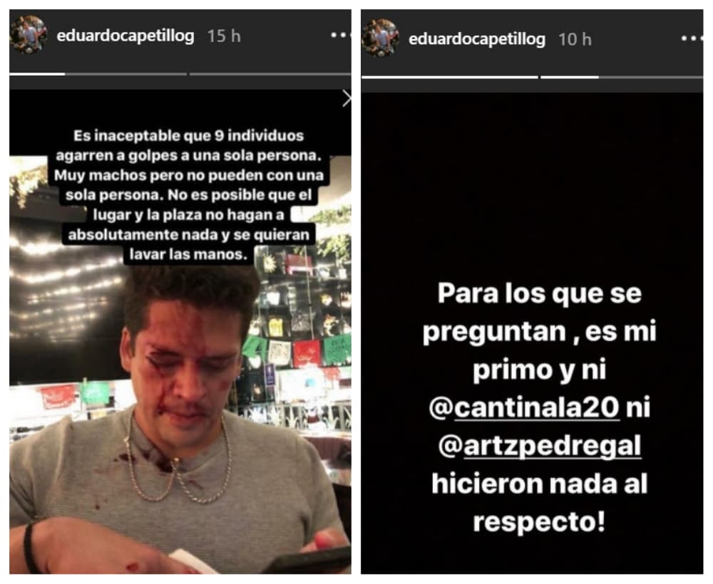 Según el relato, el primo de Eduardo Capetillo Jr. se encuentra hospitalizado "con fractura y riesgo de perder el ojo".