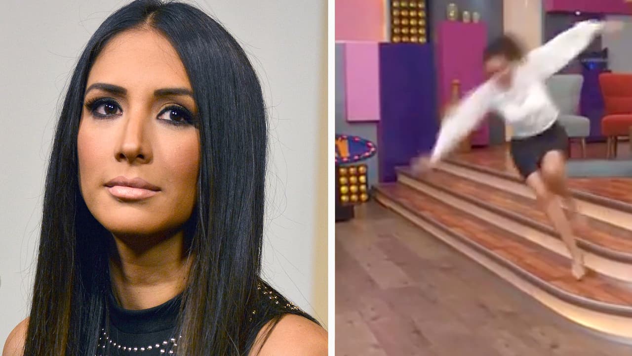El video de la fuerte caída que sufrió la conductora Cynthia Urías en plena grabación que la hizo desmayarse