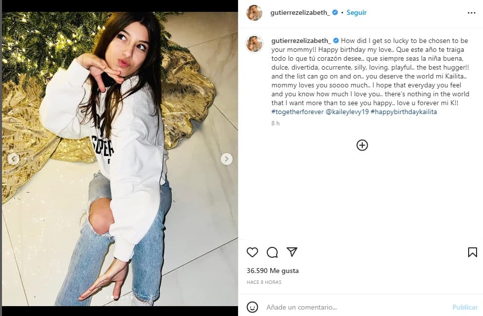 A través de las redes sociales, Elizabeth Gutiérrez publicó un extenso texto para su hija menor junto a una serie de fotos que muestran lo mucho que ha crecido Kailey Levy.