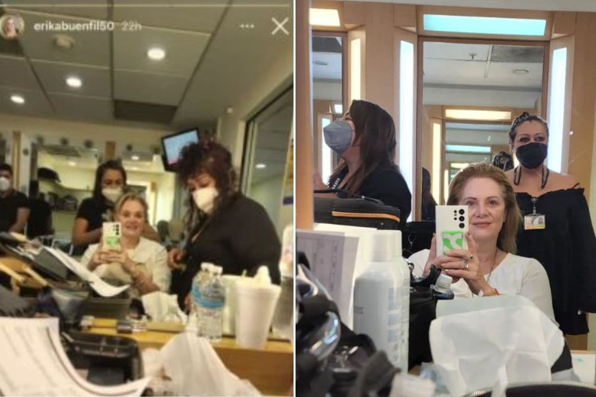 A través de sus historias de Instagram, compartió una imagen en la que aparece sin maquillar ni peinar. Al momento estaba rodeada de estilistas, quienes se preparaban para comenzar el radical cambio de look que presumió a finales de mayo.