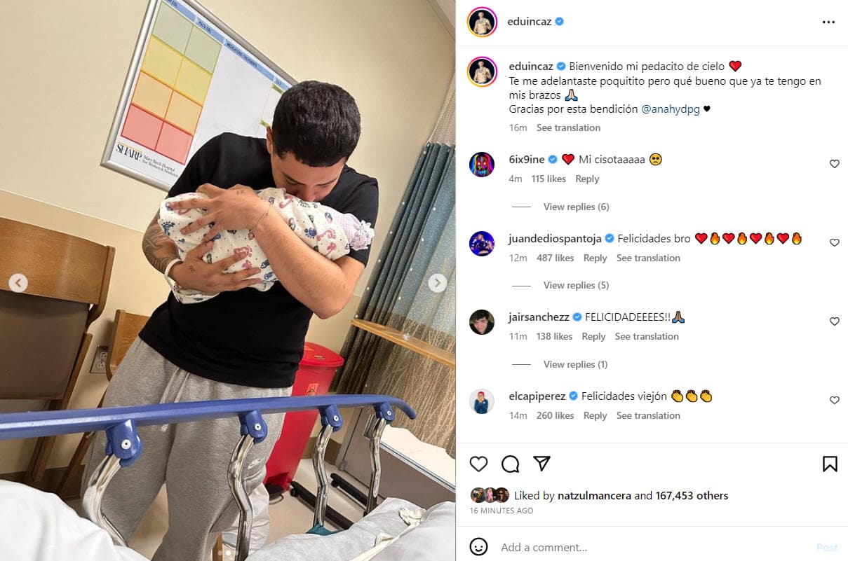 El vocalista de Grupo Firme se encargó de dar a conocer la llegada de su hijo Christian con una publicación que hizo en Instagram la noche del pasado martes 6 de junio. Ahí, él sí hizo mención a su ex, a quien etiquetó con su cuenta en esa red social.