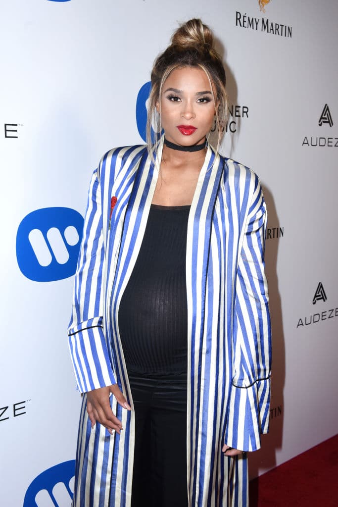 Además de sus fantásticos vestidos, Ciara también ha recorrido alfombras rojas con atuendos mucho más casuales, como su bata de rayas azules y blancas sobre un sencillo vestido negro.
