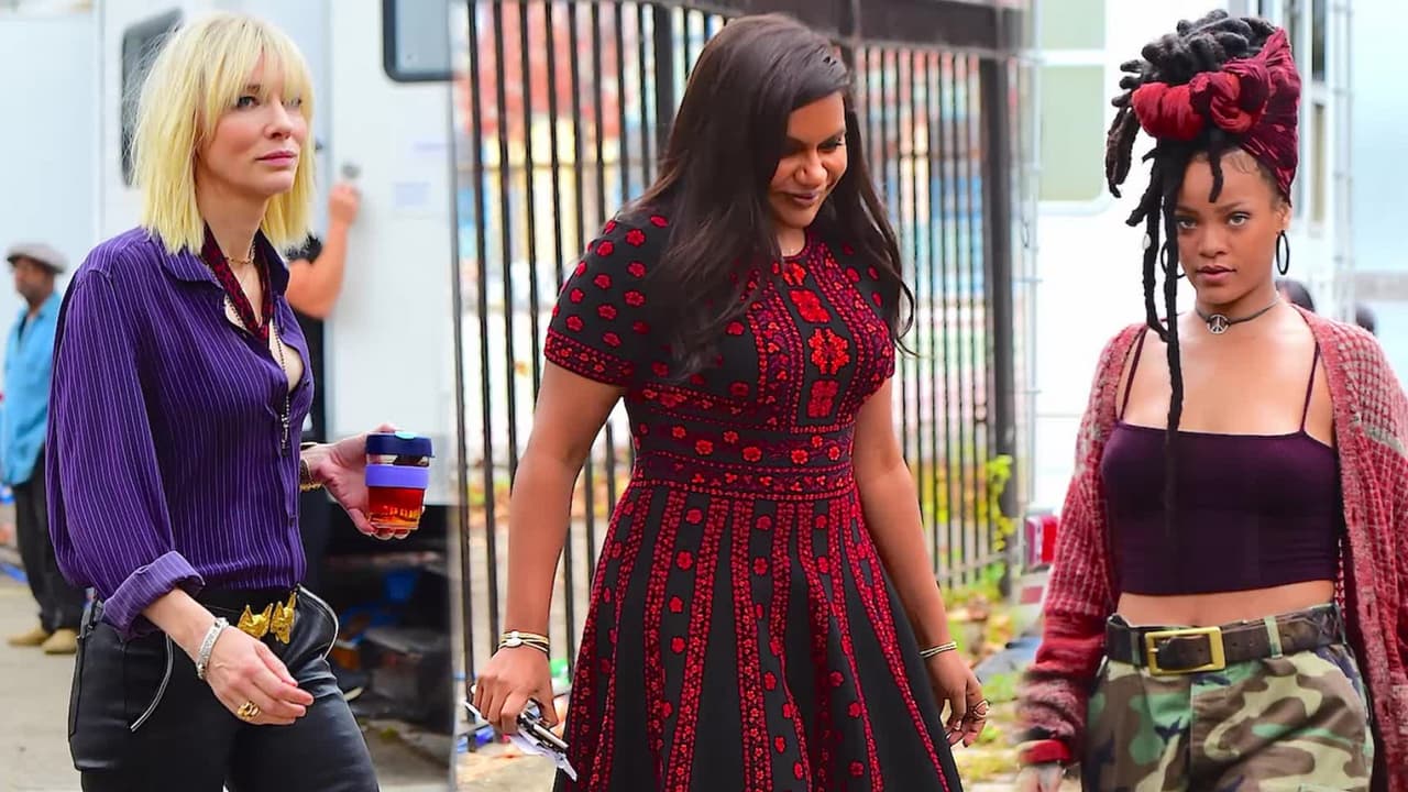 Sandra Bullock, Cate Blanchett, Rihanna, Mindy Kaling, Sarah Paulson y Helena Bonham Carter en el set de Nueva York.