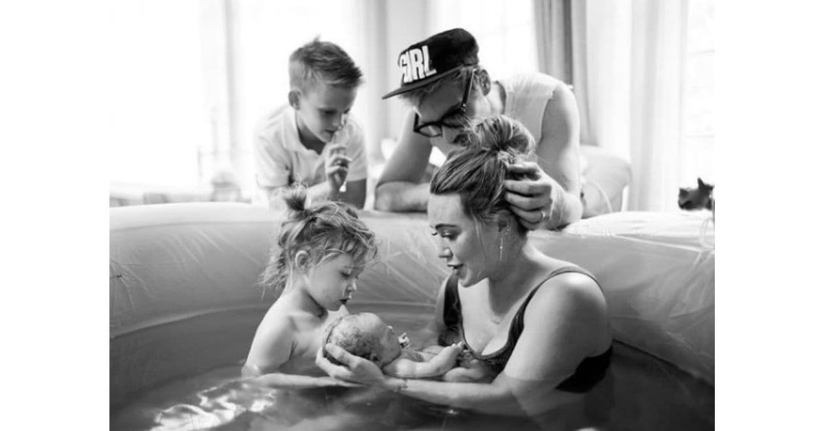 En la fotografía que publicó en su cuenta de Instagram se ve a su esposo y a sus dos primeros hijos rodeándola en una piscina.