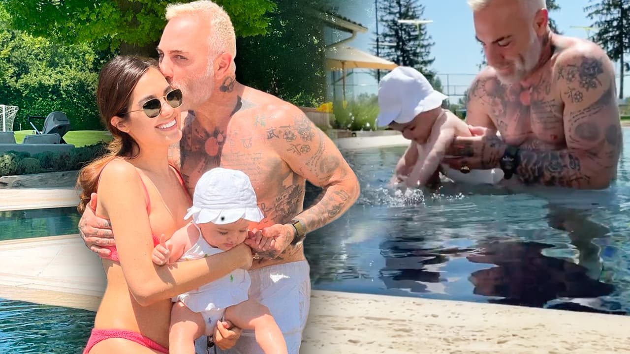 La pequeña está por cumplir 8 meses de vida y sus famosos padres la metieron por primera vez a la piscina.