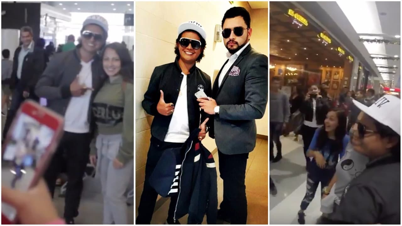 Bruno Mars fue a Colombia para un concierto y todos sus fans querían verlo. Decenas enloquecieron en el aeropuerto de Bogotá y un centro comercial cuando se cruzaron con uno que actuaba y vestía como él… las fotos y autógrafos quedarán para la posteridad como un engaño.