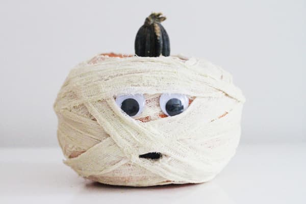 Busca calabazas blancas o píntalas en casa, luego usa 'thumbtacks' (chinches, chinchetas) para crear un diseño especial (