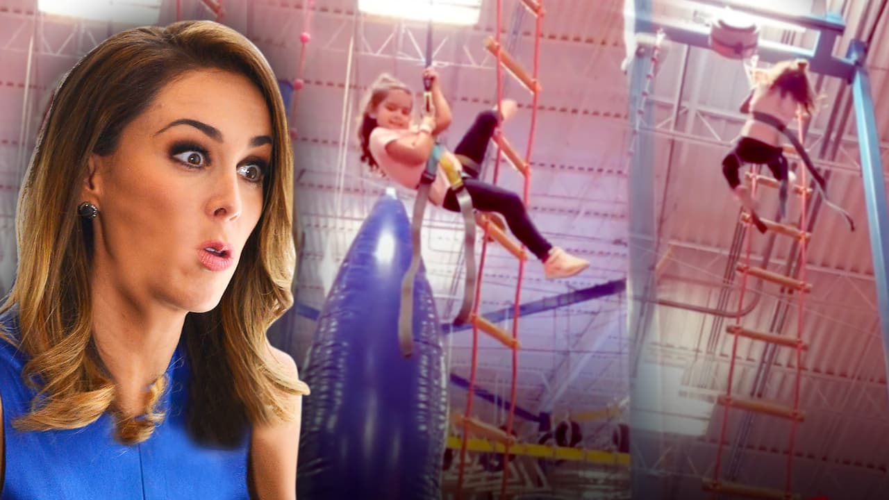 Jacky Bracamontes se lleva un 'susto' al ver a sus dos hijas cayendo de varios pies de altura en un juego extremo