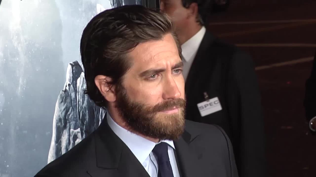 Jake escala el Everest en su película reciente y escogió una gran barba y traje cruzado sobre la alfombra roja.