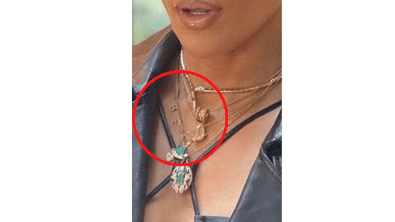 Pero los consejos que solicitó a sus fans no fue no lo único que llamó la atención en la cantante, ya que al enfatizar en los detalles que portó, se reveló que JLo utilizó un collar con las letras ‘BEN’.
