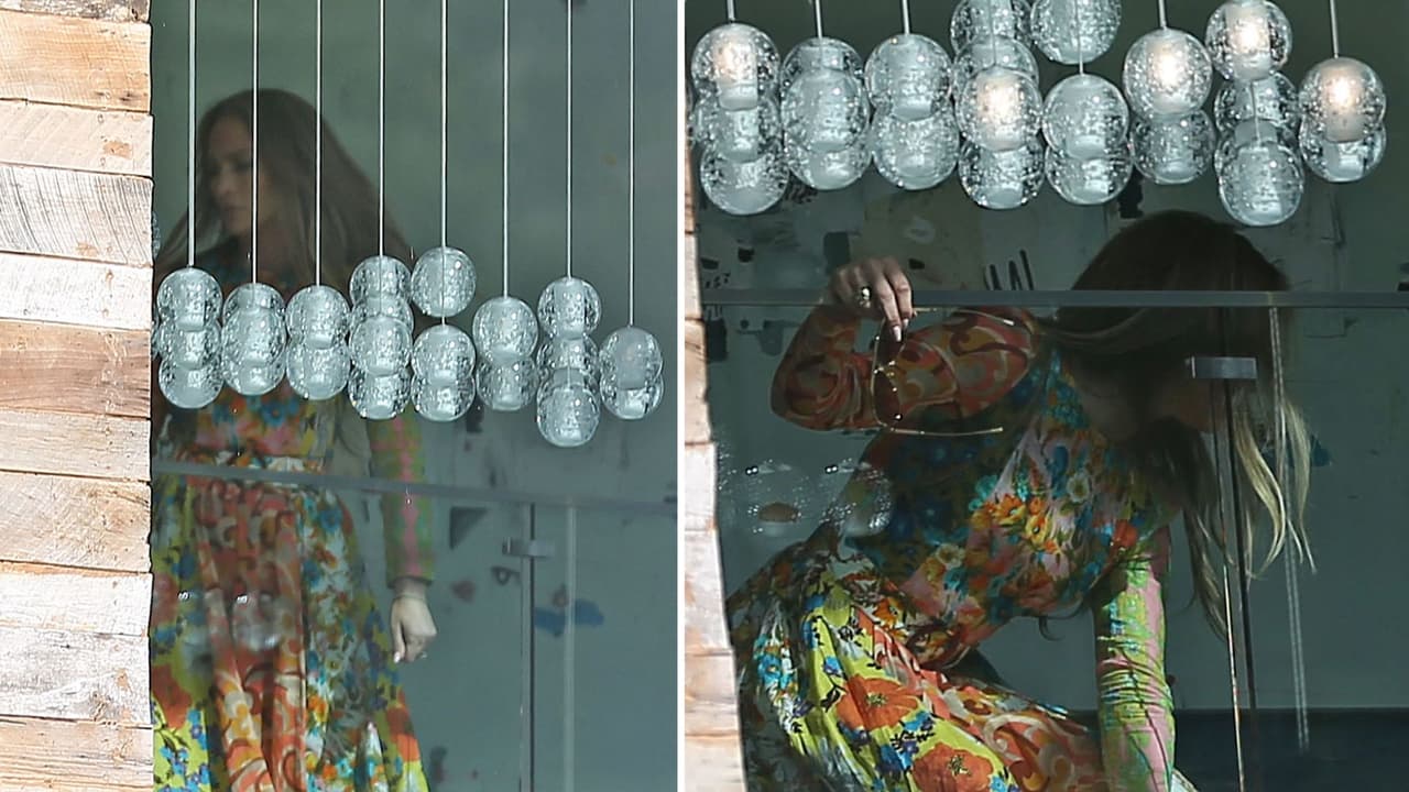 Por su parte, JLo fue captada junto a una instalación de lo que parecen ser lámparas colgantes luciendo un colorido vestido midi en corte ‘A’ que remarcaba su cintura. Para esta nueva cita con su esposo se decantó por llevar el cabello suelto, a diferencia de días pasados que para sus salidas en solitario había llevado la melena con moño alto.