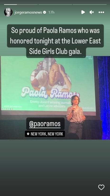Jorge Ramos externó su alegría y lo orgulloso que está de su hija Paola, quien la noche del 17 de mayo fue reconocida por su labor periodística. El titular de Noticiero Univision compartió algunas fotografías del evento que se llevó a cabo en la ciudad de Nueva York.