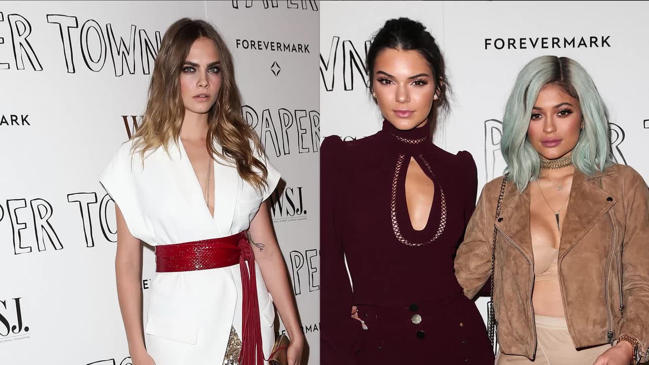 La proyección de Paper Towns se convirtió en noche de chicas pues Kendall y Kylie Jenner acompañaron a Cara Delevingne.
