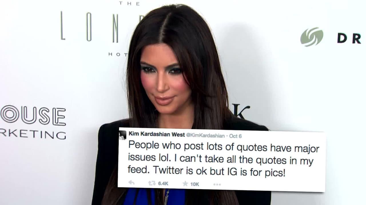 Kim Kardashian tuvo que clarificar luego de un mensaje en Twitter. La diva de reality show escribió "la gente que envía tantas frases tienen problemas. No aguanto todas las frases".