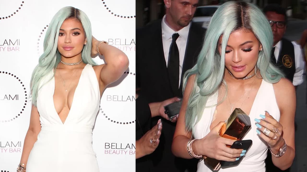 Al parecer la moda de cabello colorido está aquí para quedarse pues Kylie lució este cabello azul al asistir un evento en el Bellami Beauty Bar.