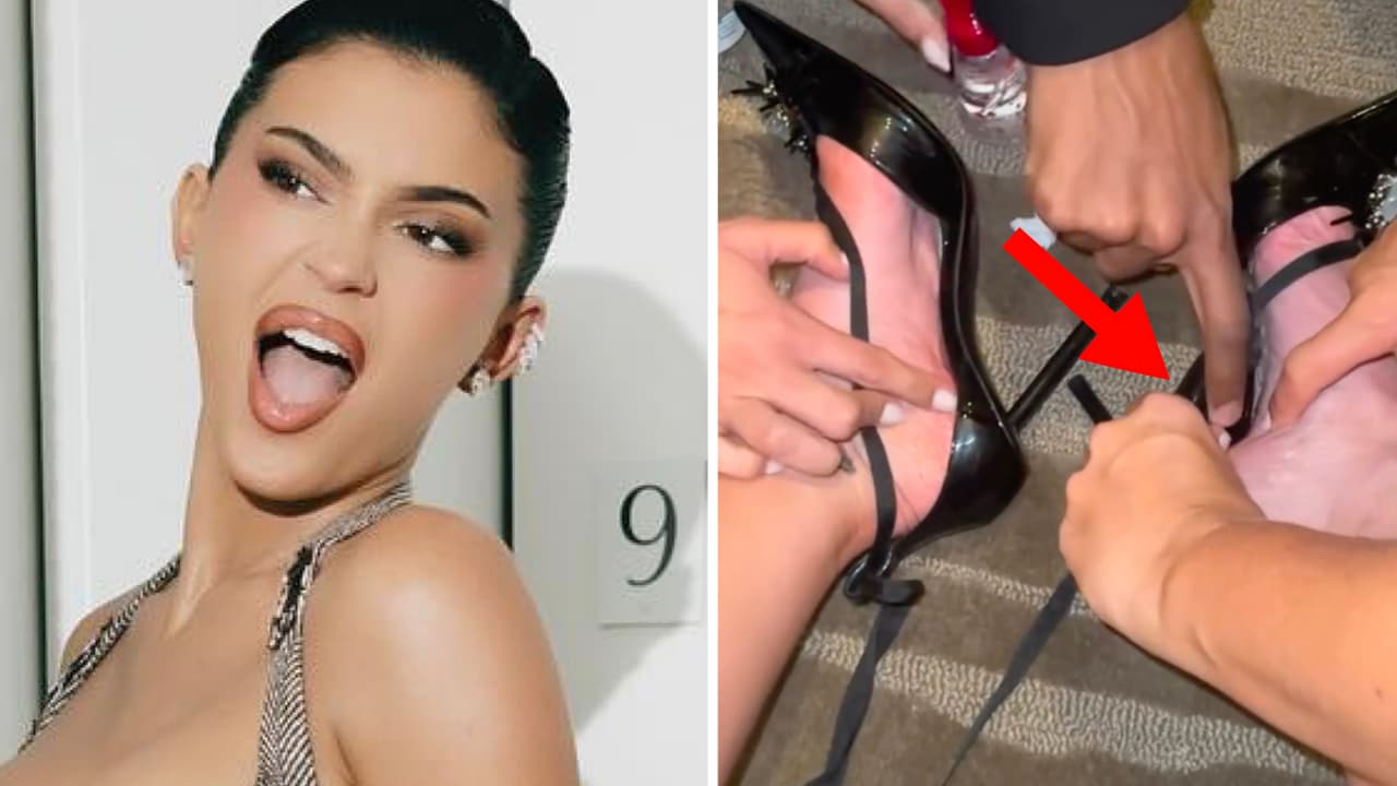 Kylie Jenner quedó atrapada en los tacones que usó para asistir a la Met Gala. Tuvo que recurrir a sus asistentes quienes trataron de auxiliarla hasta con un especie de solvente para despegarle los pies del lujoso y exclusivo calzado. Esto pasó.