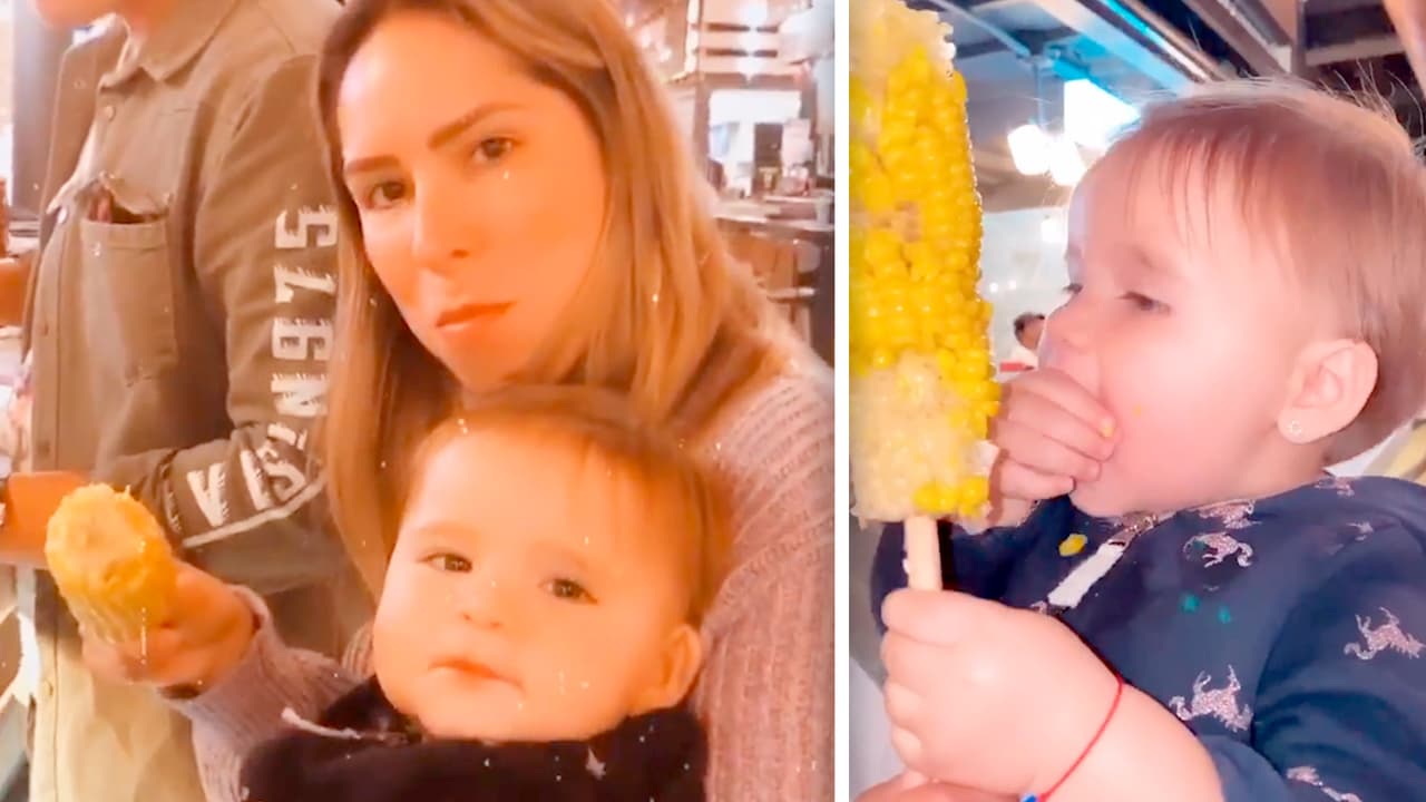 Alessia de un año de edad enterneció las redes sociales por la forma en la que disfrutó de su primer elote. Kristal Cid compartió el tierno momento y hasta cómo su pequeña hija tenía restos de comida