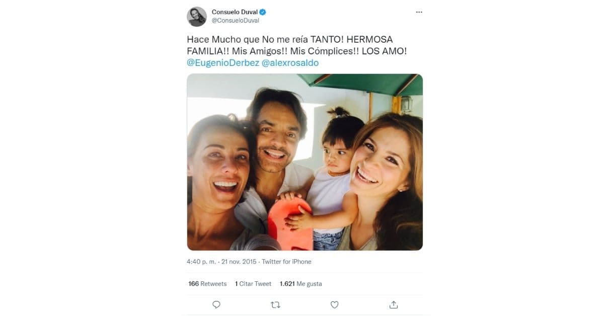 “Hace mucho que no me reía TANTO! HERMOSA FAMILIA!! Mis Amigos!! Mis cómplices!! LOS AMO! @EugenioDerbez @alexrosaldo”, expresó en la red social.