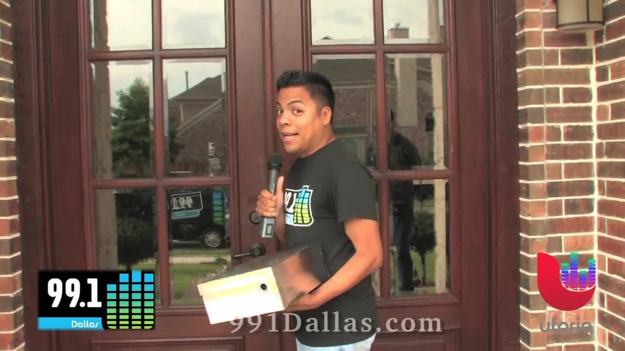 Danny Luna se encarga de entregarle los zapatos autografiados de J Balvin a la ganadora de nuestro concurso con Uforia Nation!