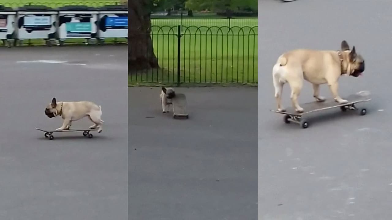 Al mejor estilo de Tony Hawk, este adorable perro se robó el show en un parque de Londres.