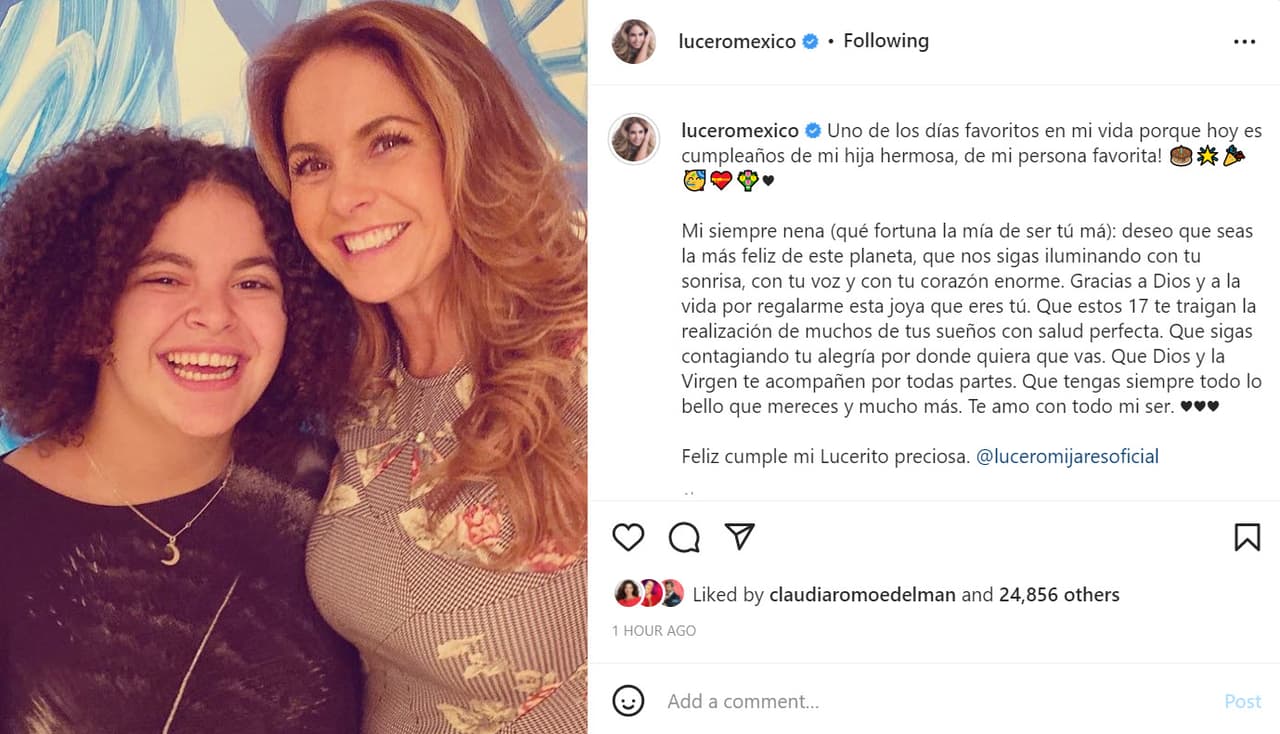 “Que Dios te bendiga siempre mi nena. Disfruta y festeja mil, que todos los instantes de tu vida seas tan feliz como me haces con tu existencia! Celebro todos los días de tu bella vida! Te amo mi Lucero”, agregó.