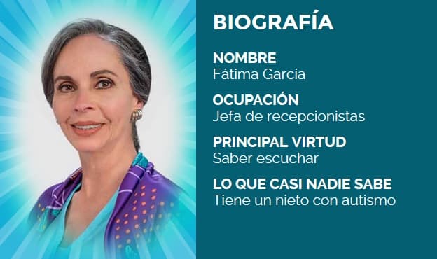 Fátima es jefa de recepción en Icónika y secretaria de Augusto y Sandra.