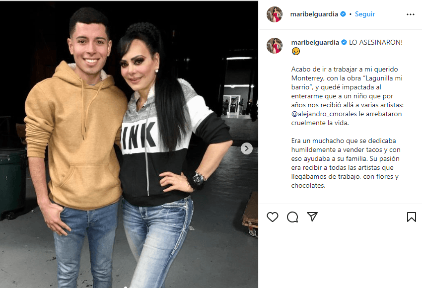 El pasado 26 de marzo, la costarricense de 63 años se pronunció en su cuenta de Instagram ante el fallecimiento del joven de 25 años conocido como ‘El taquero de las estrellas’. En un extenso texto y junto a un par de imágenes con el hoy fallecido, Maribel Guardia contó que fue asesinado días antes de que ella arribara a la ciudad de Monterrey, donde tenía una fecha programada con la obra ‘Lagunilla mi barrio’.