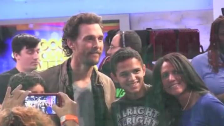 La estrella de cine se vio muy feliz y relajado al hacer una aparición en las horas de la mañana en Good Morning America.