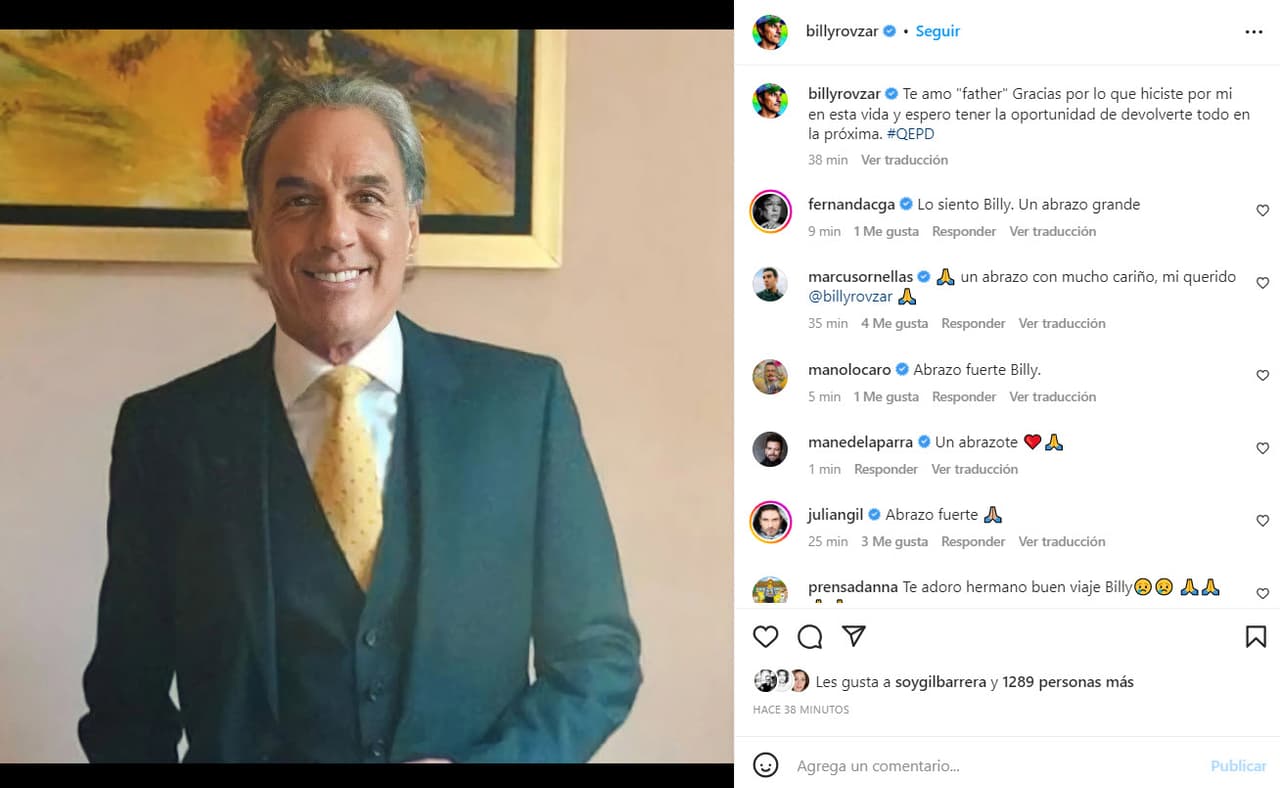 Luego de que el productor Billy Rovzar compartió la noticia en Instagram, amigos y famosos mandaron sus condolencias a la familia.