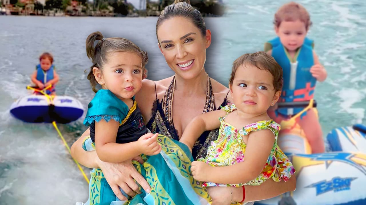 La actriz y conductora mexicana quedó sorprendida junto a Martín Fuentes al ver cómo una de sus mellizas se mantuvo enfocada y sin llorar, mientras se abría paso entre las olas.