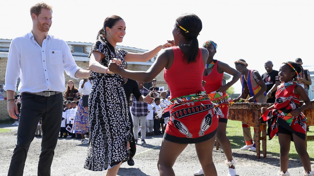 Los duques de Sussex dieron comienzo a su primer tour oficial tras el nacimiento de su hijo Archie, que también se encuentra con sus padres en África. Uno de los sitios que visitaron fue el de un grupo que enseña defensa personal y empoderamiento a niños que han sufrido traumas. Meghan y Harry se dejaron contagiar por la alegría de los asistentes e hicieron un espontáneo baile acompañado las risas y aplausos.