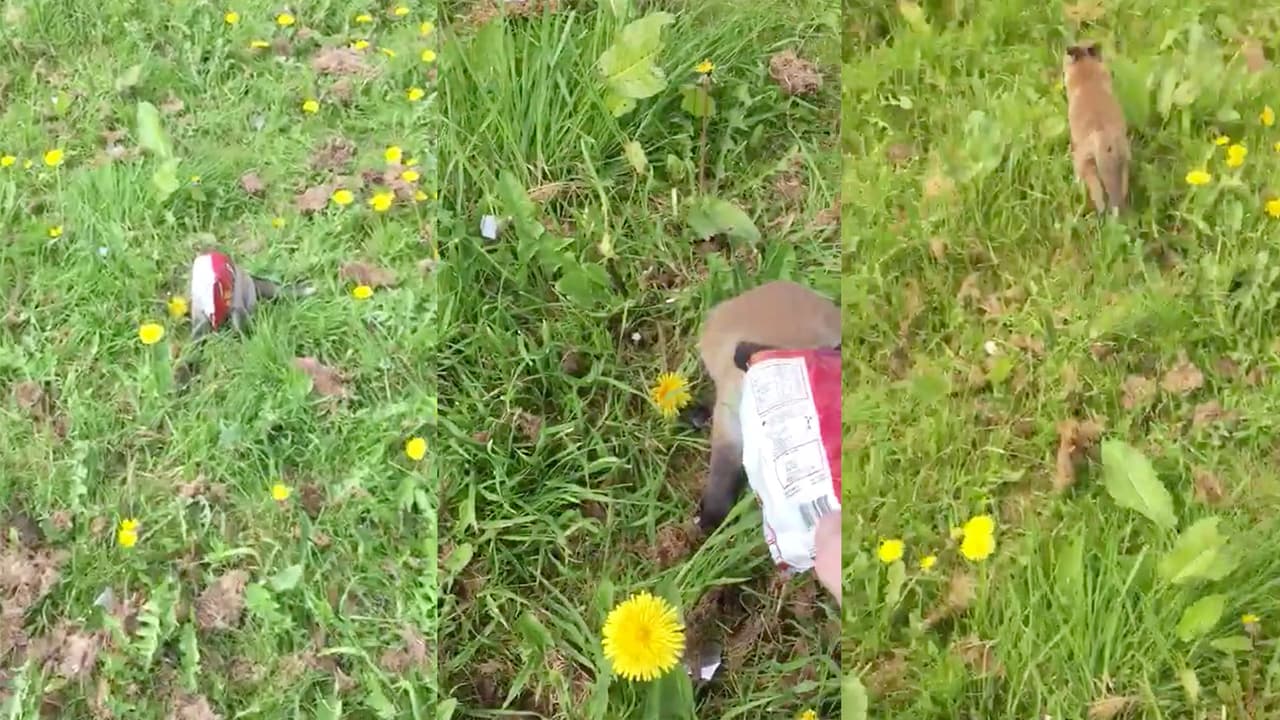 Policía descubre a un pequeño zorro que se robó un paquete de papas fritas