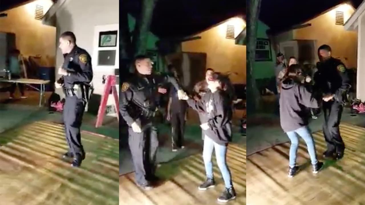 Lo que empezó como una queja de ruido en una casa en San Antonio, Texas, terminó en una fiesta con un oficial de policía como profesor de baile.