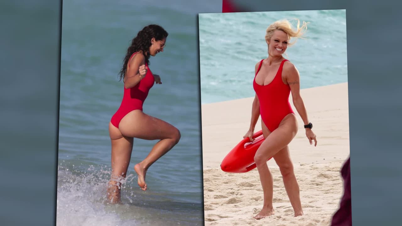 La hermosa italiana lució un traje de baño de una pieza que se parecía mucho al vestido que Pamela Anderson usaba en el clásico show.