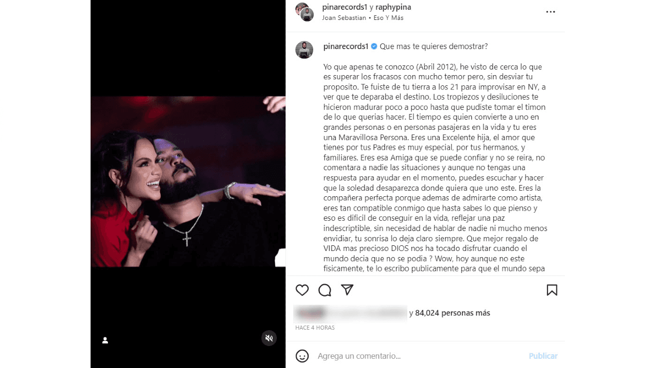 "Yo que apenas te conozco (Abril 2012), he visto de cerca lo que es superar los fracasos con mucho temor, pero sin desviar tu propósito. Te fuiste de tu tierra a los 21 para improvisar en NY, a ver qué te deparaba el destino. Los tropiezos y desilusiones te hicieron madurar poco a poco hasta que pudiste tomar el timón de lo que querías hacer", escribió al inicio de le extensa carta publicada en Instagram.