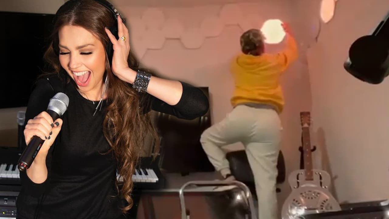 La artista mexicana estaba muy feliz por las luces que recibió para su estudio de grabación. Sin pensarlo dos veces y sin ayuda, Thalía se dio a la tarea de hacer la instalación y tal parece que le quedó muy bien.