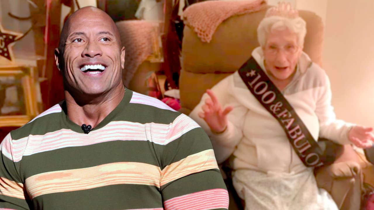 Tienes que ver la felicidad de la fan de ‘The Rock’ cuando la sorprende al cumplir 100 años