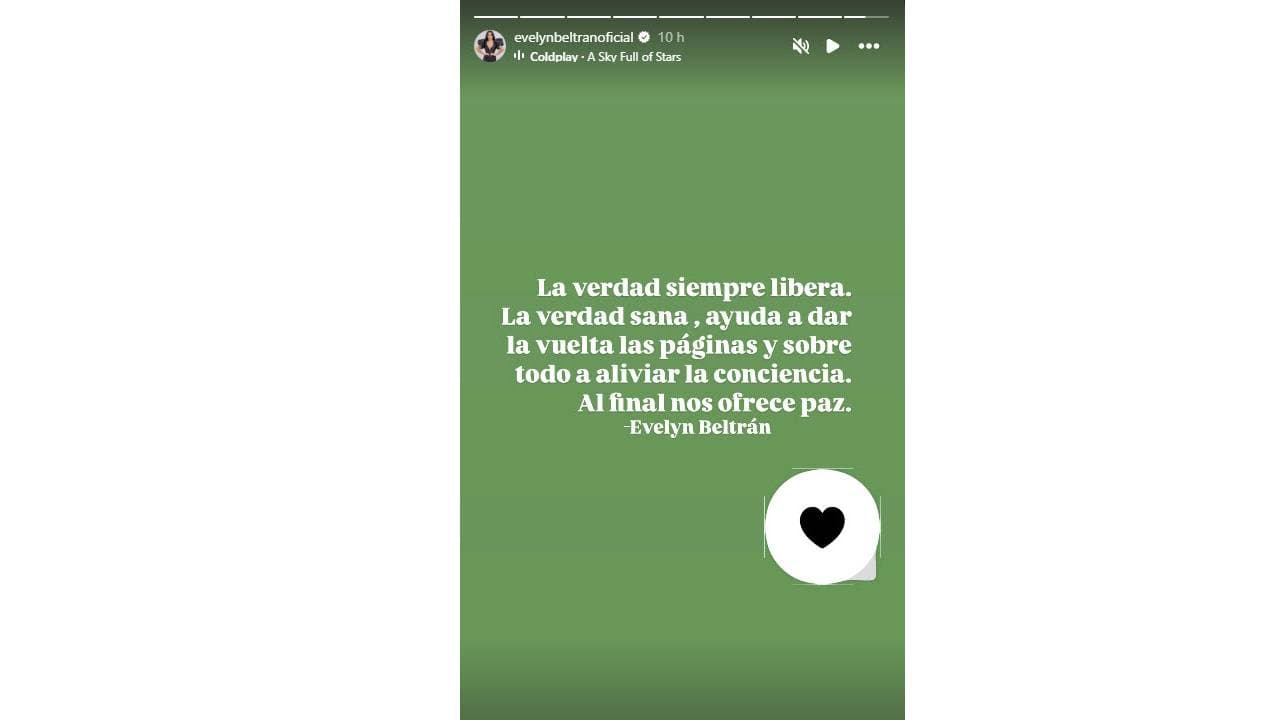 "La verdad siempre libera", se lee al principio del texto publicado en una de sus historias de Instagram. "La verdad sana, ayuda a darle vuelta a las páginas y sobre todo a aliviar la consciencia. Al final nos ofrece paz", finalizó.