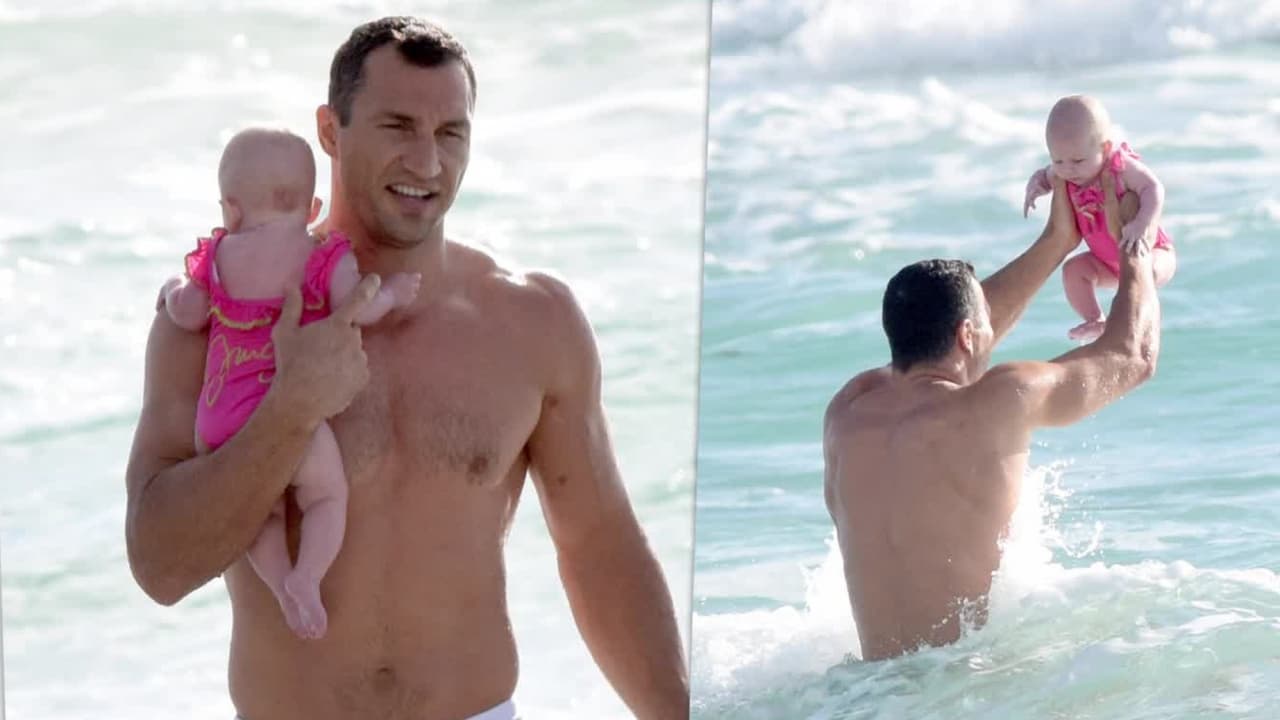 Échenle un vistazo a estas fotos del boxeador de peso pesado Wladimir Klitschko llevando a su hija Kaya de cuatro meses a Miami Beach.