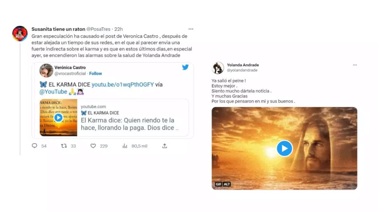 A finales de abril, Verónica Castro publicó un tuit hablando del karma, por lo que se especuló estaba dirigido a Yolanda Andrade, quien había dado a conocer su delicado estado de salud por el aneurisma que le diagnosticaron.