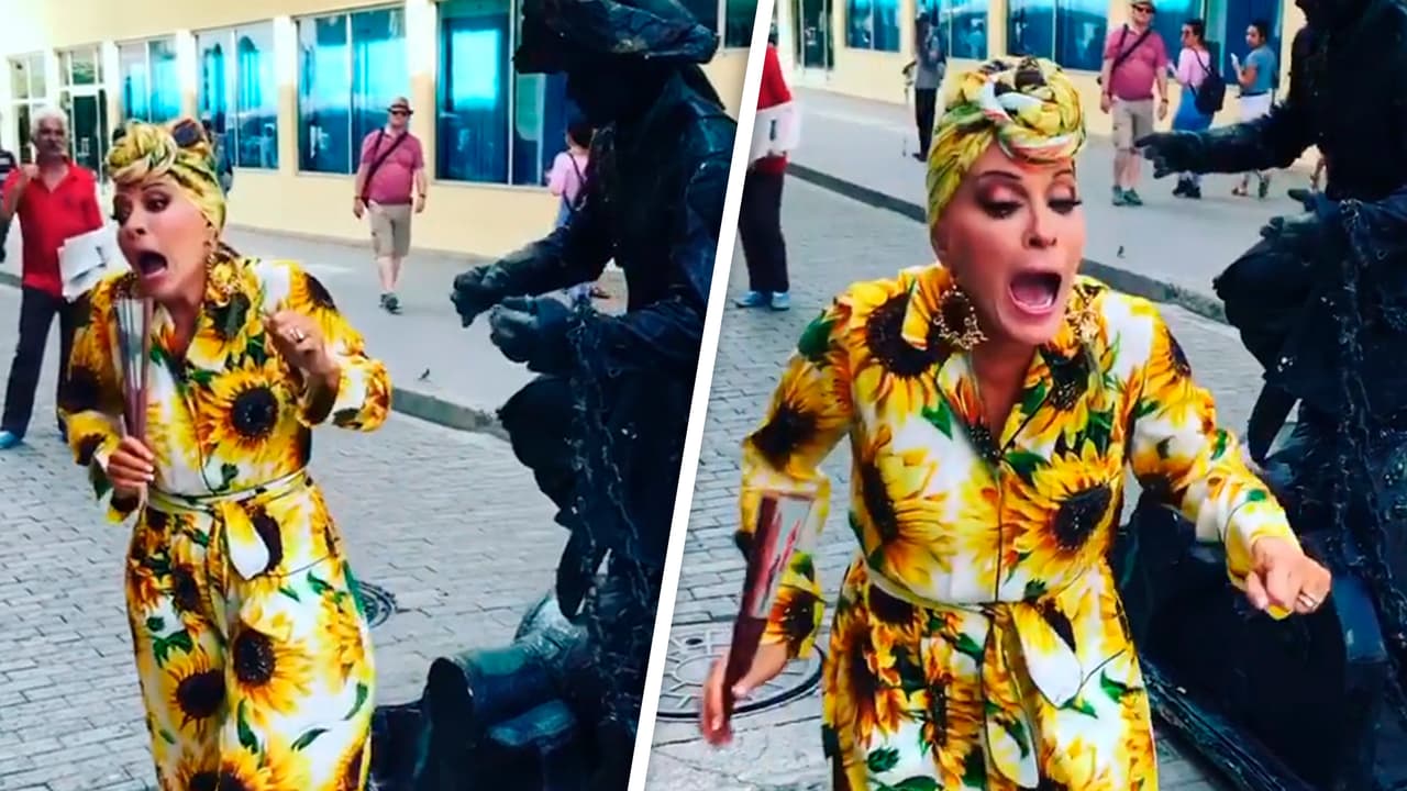 El espanto que vivió la cantante al ver que una 'estatua' cobró vida la hizo gritar en plena calle de la capital cubana, sin importar que había más gente en el lugar. La intérprete mostró este jueves los momentos antes y después del sobresalto que seguramente no olvidará.
