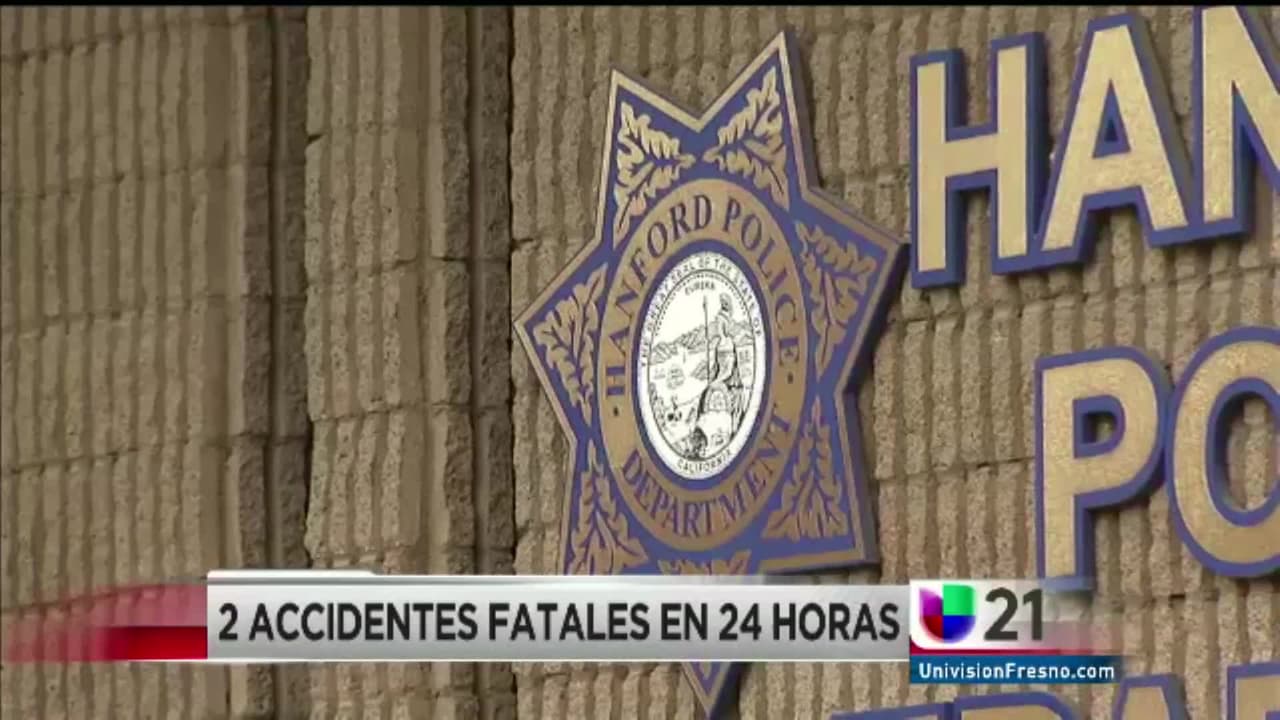 En un periodo de 24 horas dos personas perdieron la vida y otras dos resultaron heridas en accidentes automovilsticos en el area de Hanford. Por tal motivo la patrulla de caminos pide a todos los conductores que tengan extrema precaucion al salir a carretera. Jose Gonzalez en vivo nos tiene los detalles