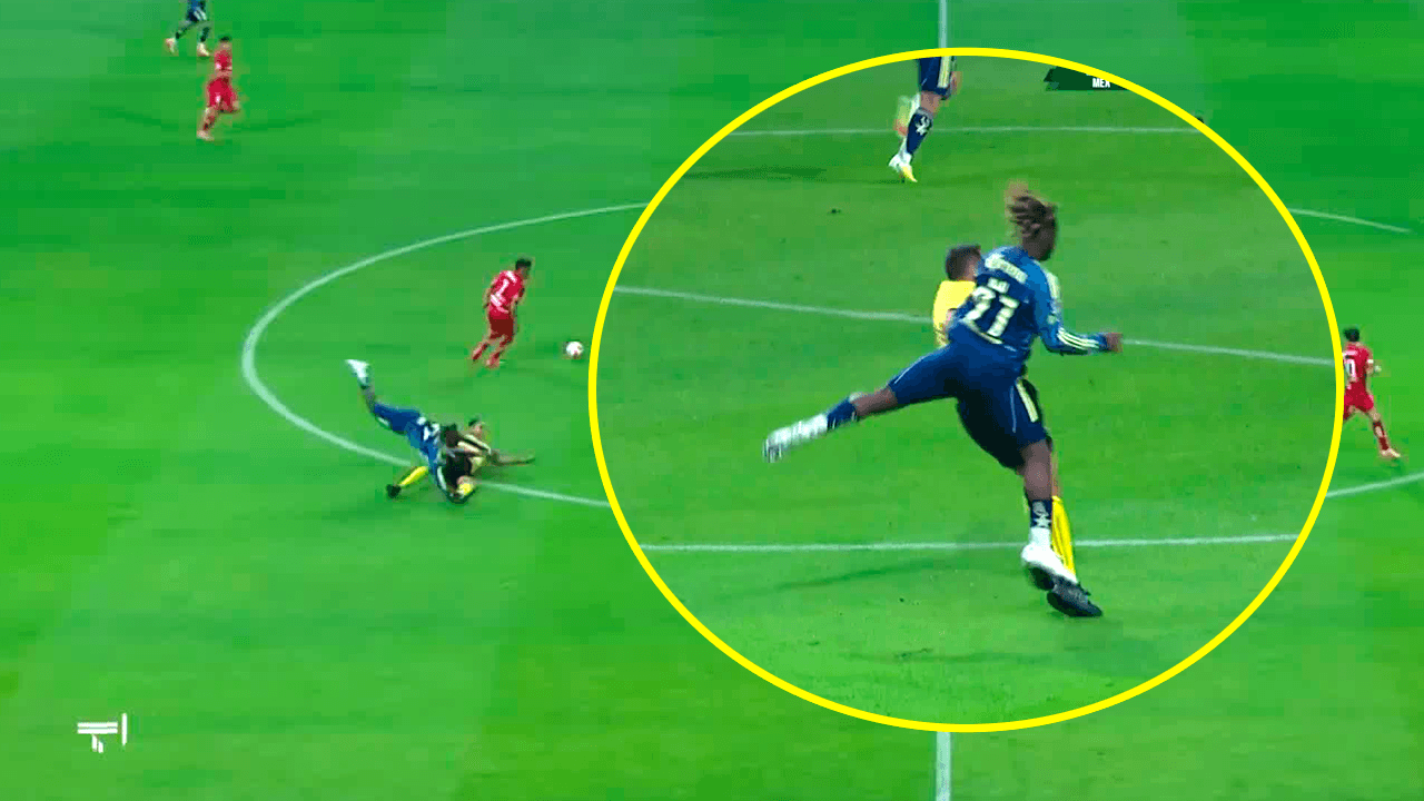 El árbitro se mete en la trayectoria del francés y lo atropella de forma lamentable