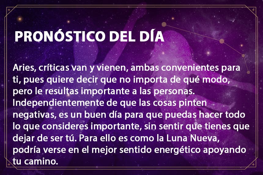 HoróscoposAries - Martes 12 de enero del 2021: logras liberarte de tus preocupaciones Aries, con la Luna nueva en camino tiene la libertad de hacer lo que tienes en mente sin tener que quedar bien con nadie. Por:LIZZ LUNAPUBLICIDAD1/12ariesdiario2020UnivisionPUBLICIDAD2/12UnivisionPUBLICIDAD3/12UnivisionPUBLICIDAD4/12UnivisionPUBLICIDAD5/12La Luna está en tránsito a Capricornio y estamos en la víspera del primer novilunio del año, que unido a la vibración de hoy tiene un impacto directo en cada uno de los signos zodiacales.PUBLICIDAD6/12UnivisionPUBLICIDAD7/12UnivisionPUBLICIDAD8/12UnivisionPUBLICIDAD9/12UnivisionPUBLICIDAD10/12UnivisionPUBLICIDAD11/12UnivisionPUBLICIDAD12/12UnivisionPUBLICIDADRelacionados:HoróscoposHoróscopo DiarioAriesPUBLICIDADNuestro streaming gratis y en español. Entretenimiento sin límites, en vivo y on-demandGratisGratisGratisGratis¿Quieres ver todo el catálogo de contenidos?ir a ViX